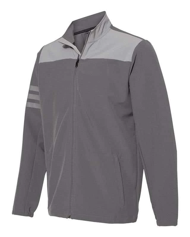 The Adidas® 3-Stripes Jacket is the perfect lightweight jacket that offers a sporty look. The Polyester rich elastane weave has a water repellant finish making this a go-to jacket so you are prepared for unforseen weather.
