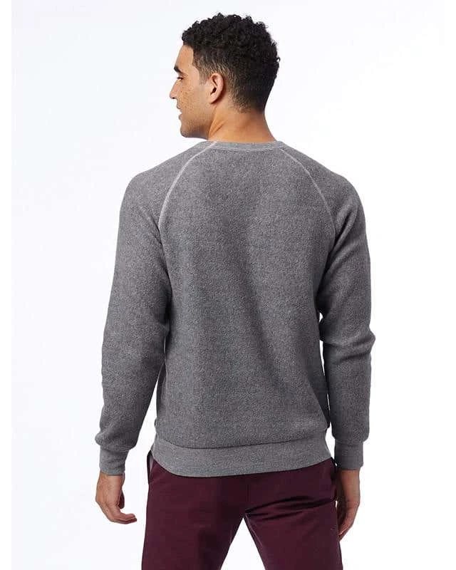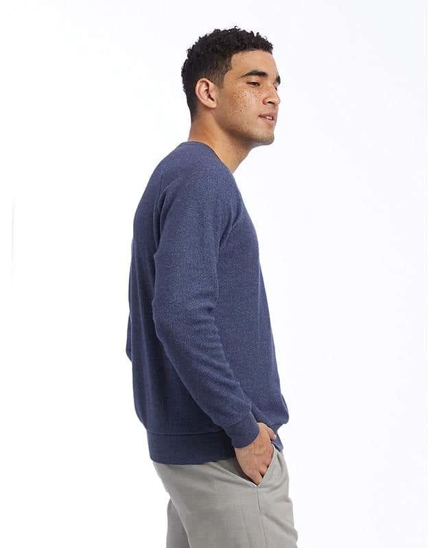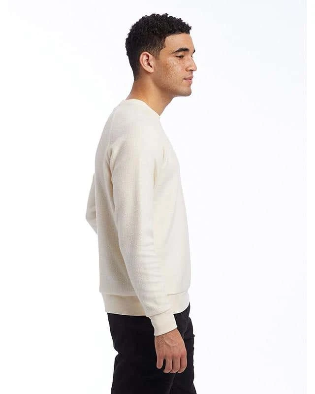 6.5 oz., 50% polyester, 46% cotton, 4% rayon; Contains organic and recycled materials; Bound ribbed neckband; Ribbed hemband and sleeve cuffs; Raglan sleeves