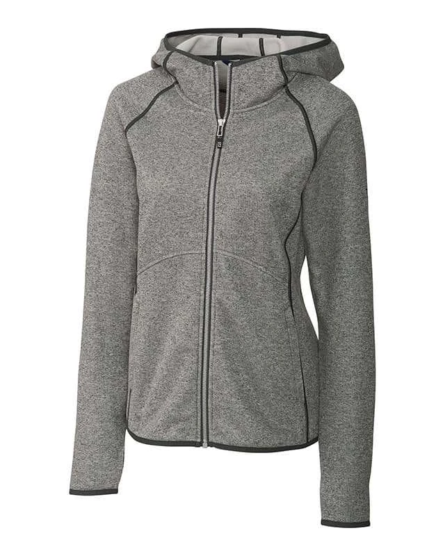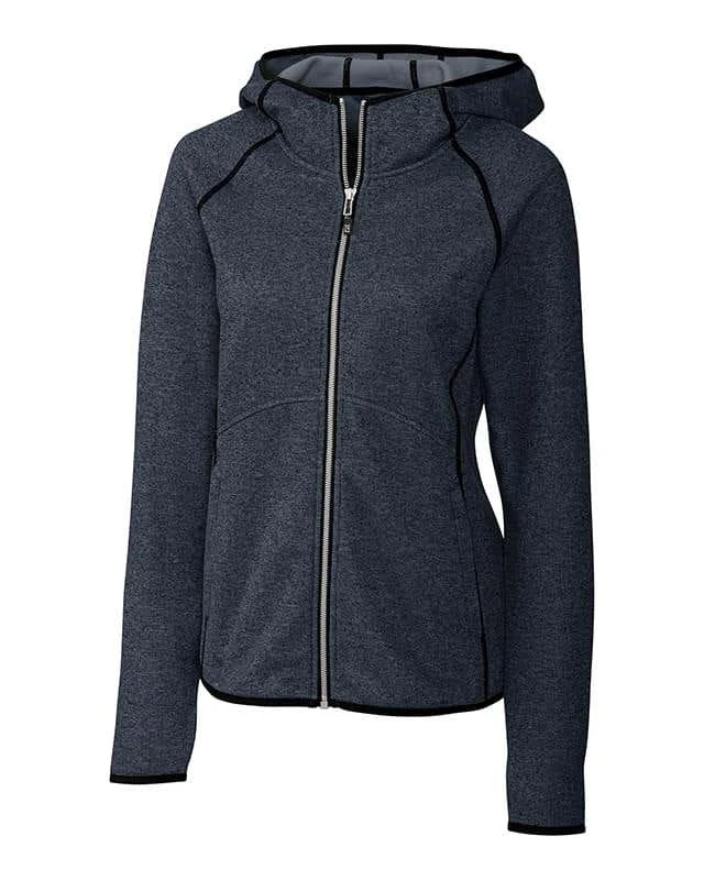 Heather French Terry, Hood, Wind-resistant, Heather knit sweater fleece, Hood full zip, sweater-knit exterior and brushed fleece interior, Raglan sleeve, Curved hem, Full-Zip Jacket, Novelty dense cover stitch, Zip pocket at lower front, Hoodie, 2×2 Rib cuff and hem, Slant Seams at front, Thumbholes at sleeve, Straight hem at front with drop tail hem at back, Imported, Contrast binding at neck, cuff, hem, covered zip pockets, Contrast color stretch tape, Novelty silver zipper, Thumbholes, Tonal coverstitched seams, CB logo zipper pull attached to center front zipper, CB pennant embroidery at center back collar, drop tail, CB pennant embroidery at left shoulder