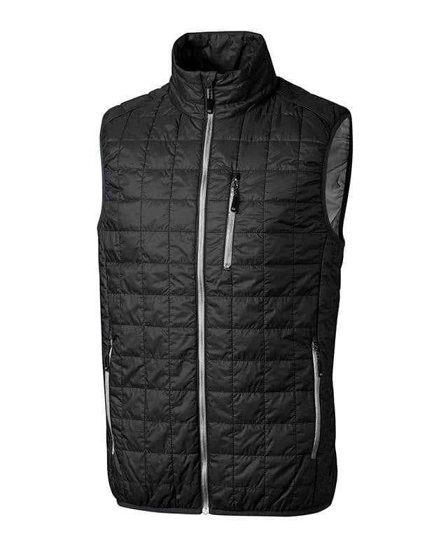 Insulated ~ Mock neck~Full zip~ Zippered front pockets~Elastic bound armholes and hem~Fully lined~Zipper in lining for embroidery access~Light weight~Wind and water resistant~Primaloft fill~Packable into left front pocket