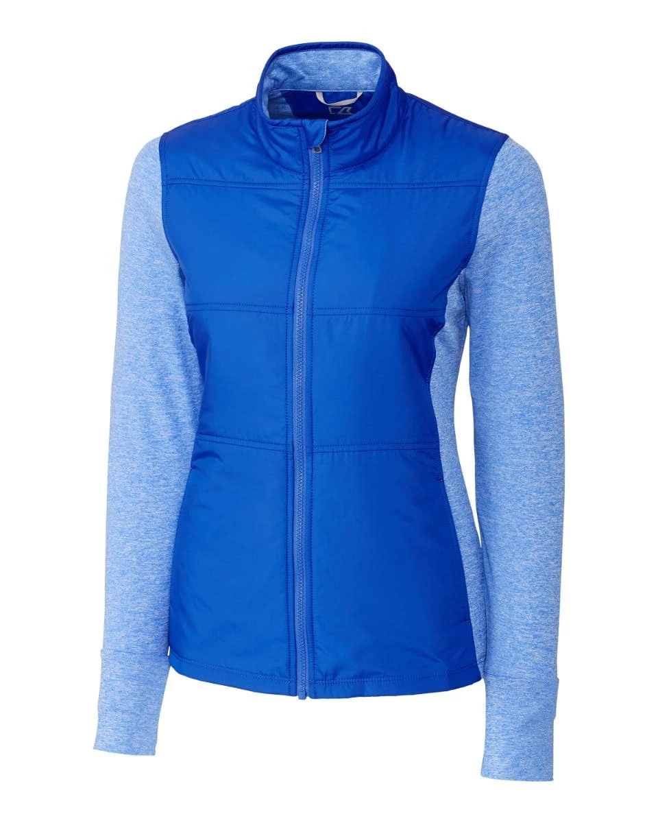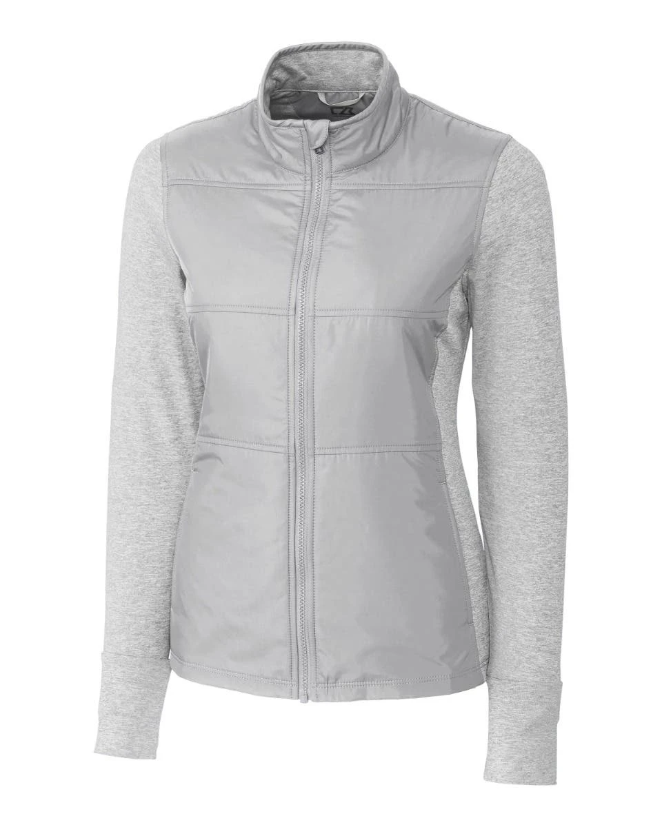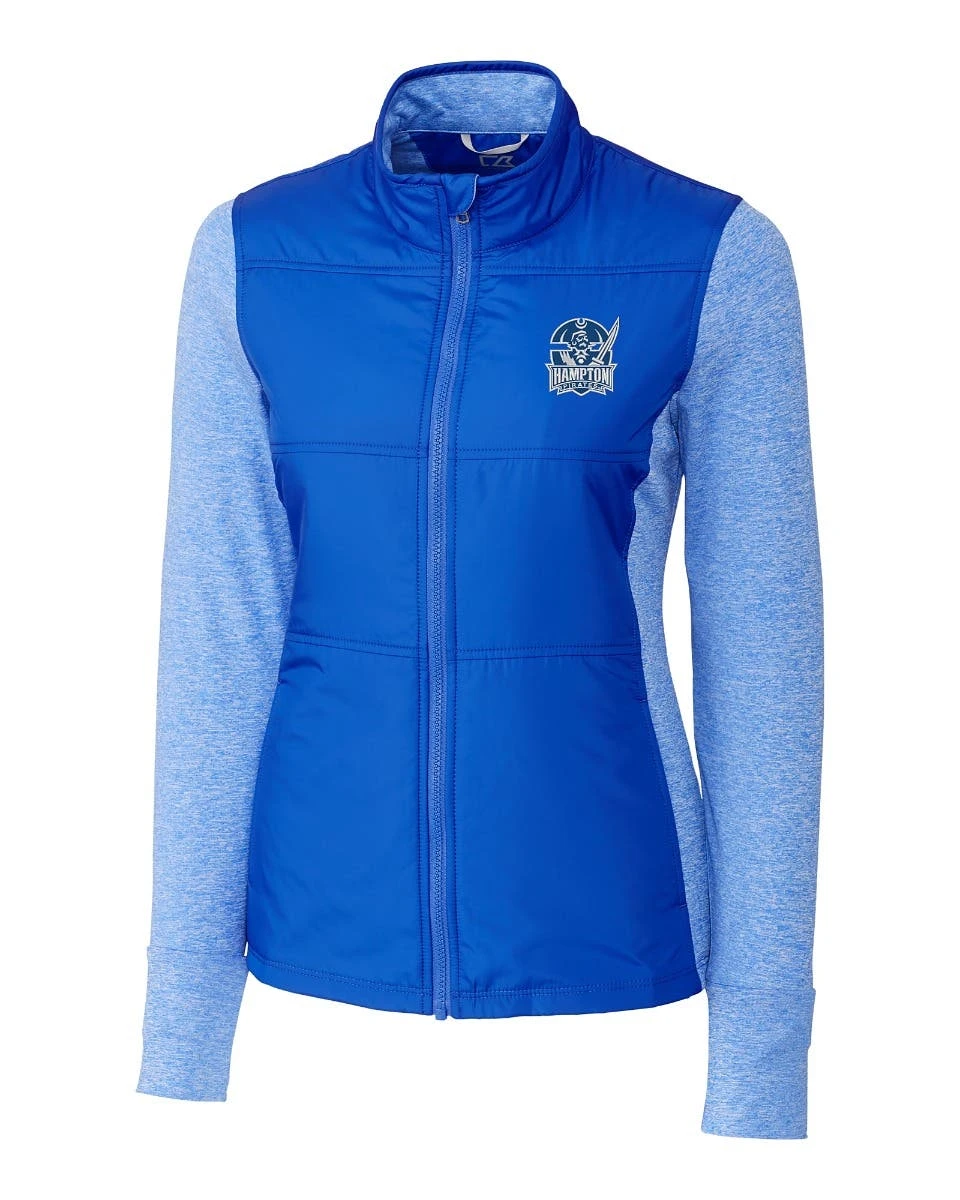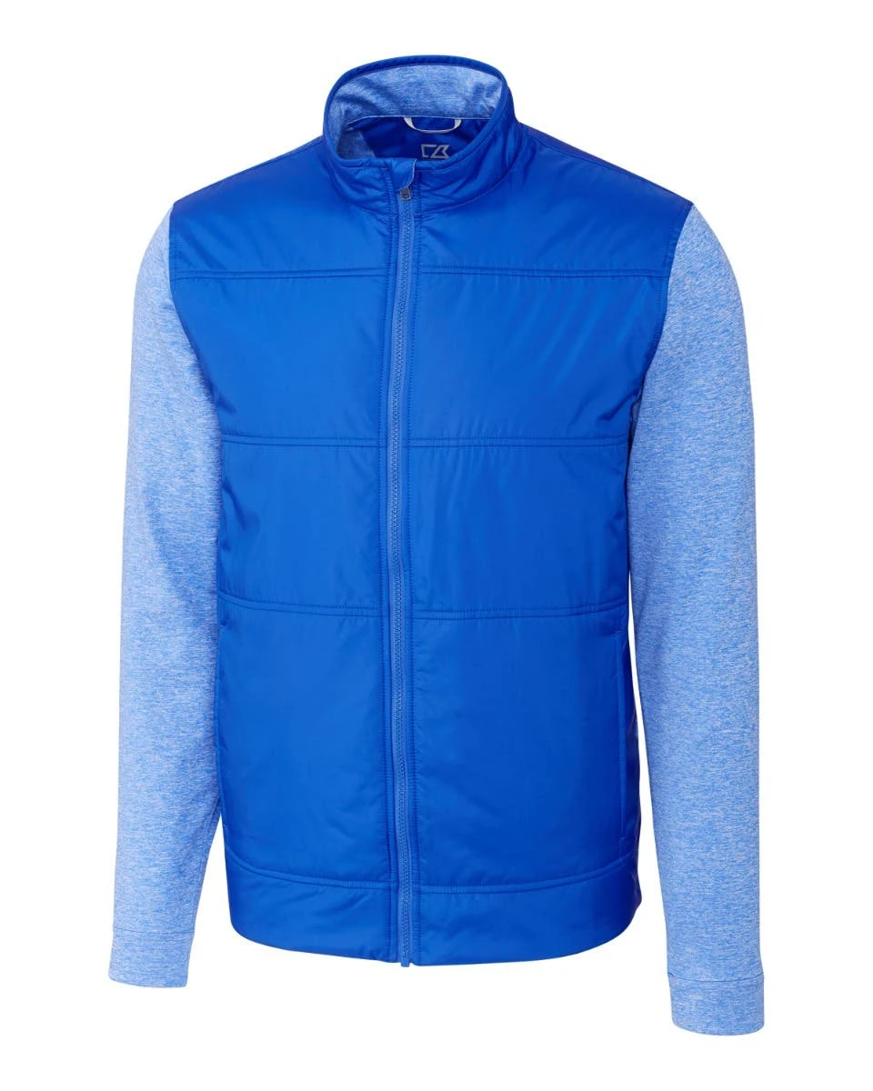 CB DryTec~Mock Collar with full zip~ Weather resistant quilted front panel and back yoke~Knit jersey sleeves, side body, and back~invisible zipper pockets at front design lines~C&B Pennant heat transfer at back neck~Moisture wicking~Solid with heather~Imported