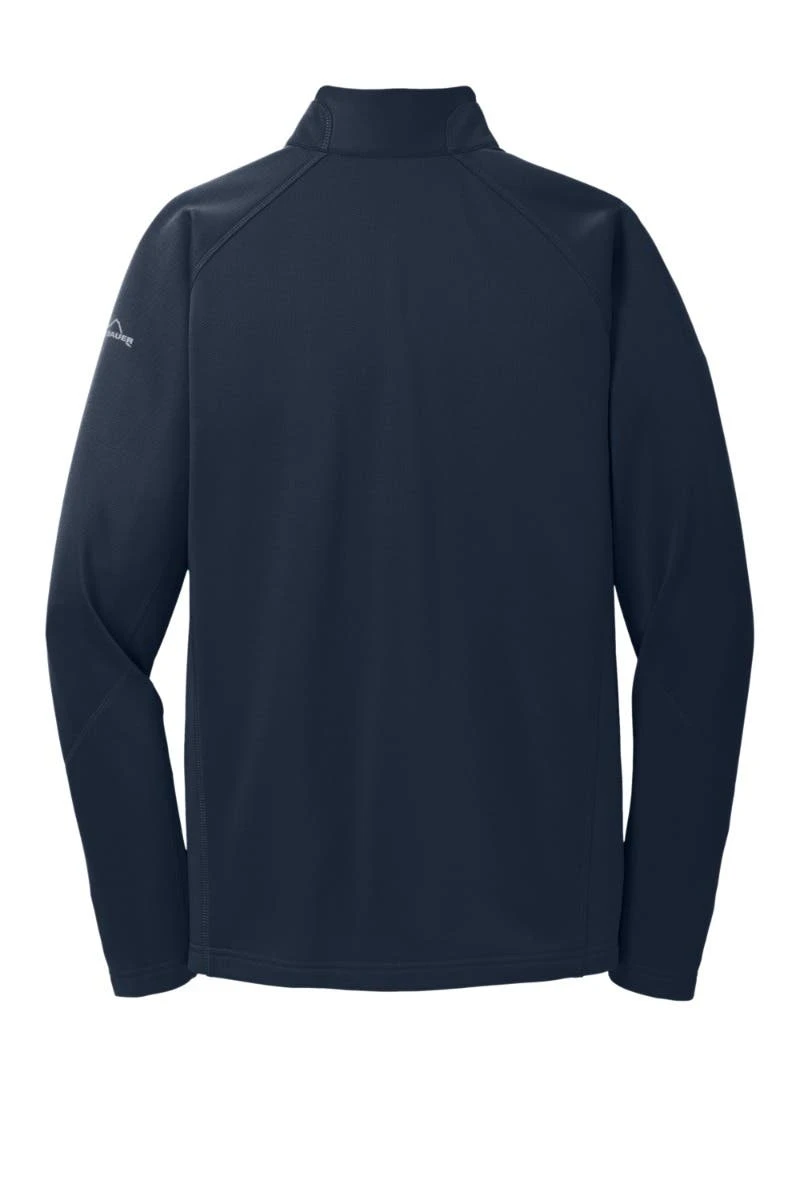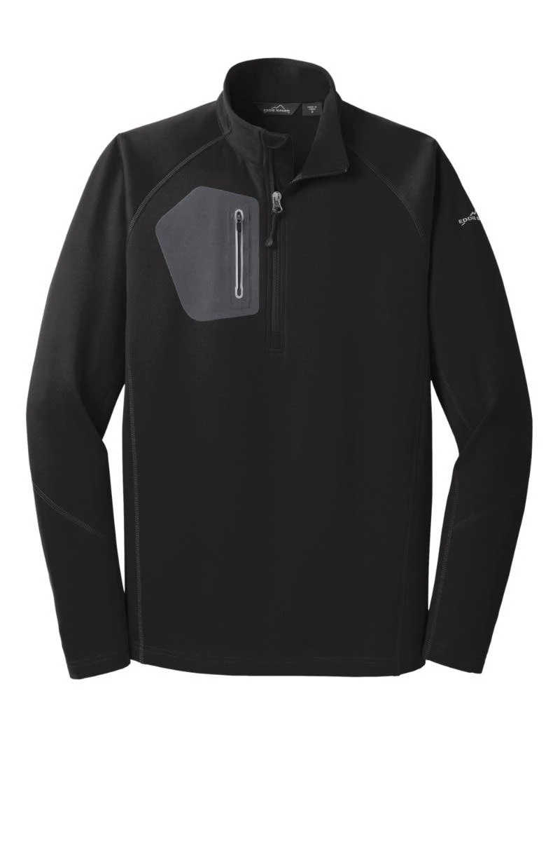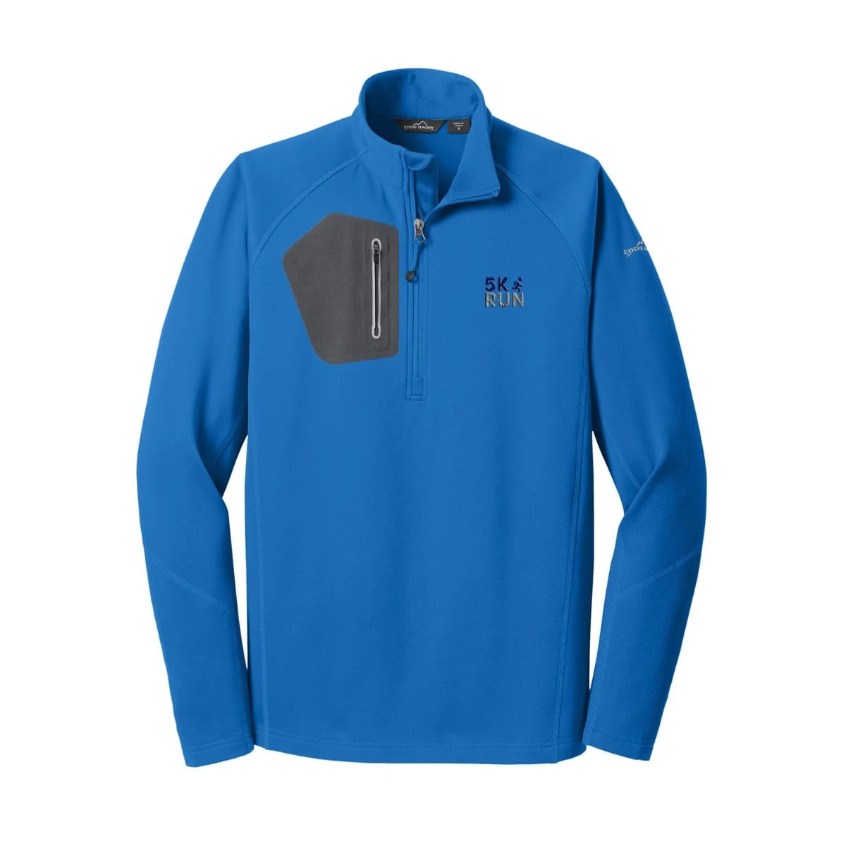 Smooth-faced fleece with a subtle grey print gives this 1/2-zip a sleek performance look. Reverse coil zipper, open cuffs and an open hem. Welded zippered chest pocket, contrast Eddie Bauer heat transfer logo on left sleeve. Made of 7.7-ounce, 95/5 poly/spandex.
