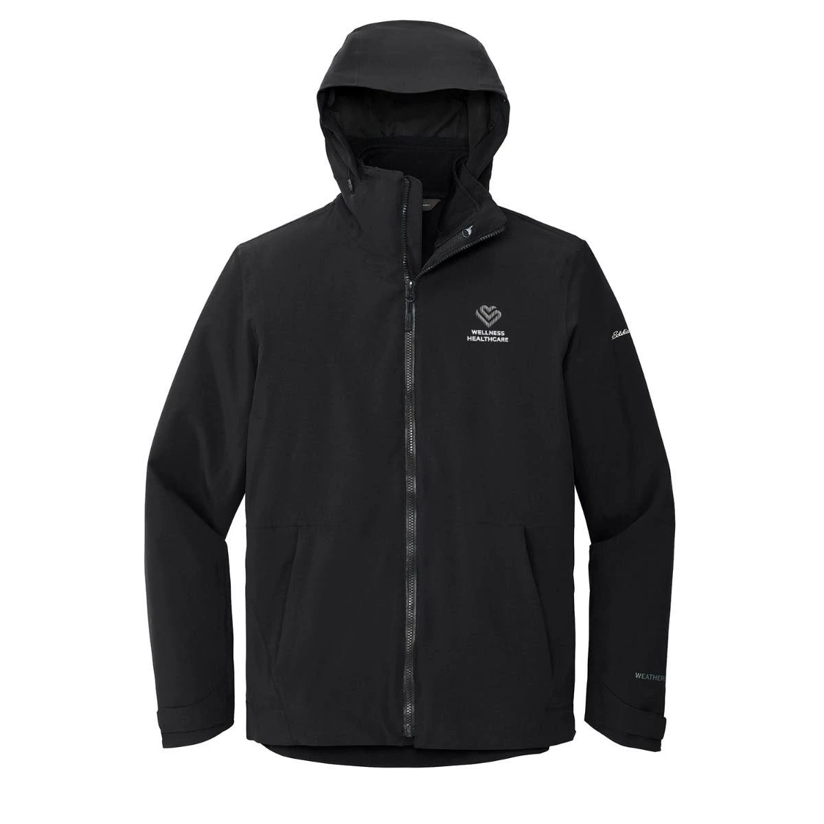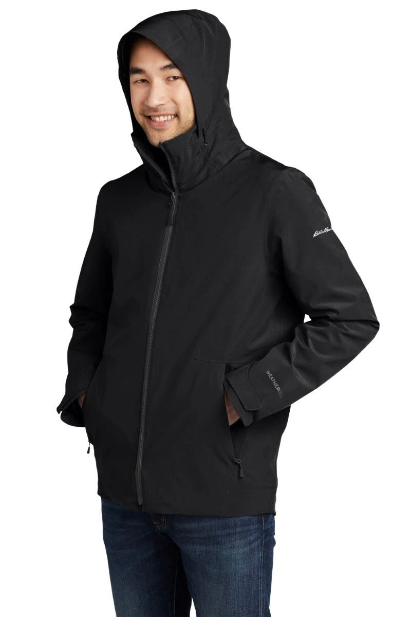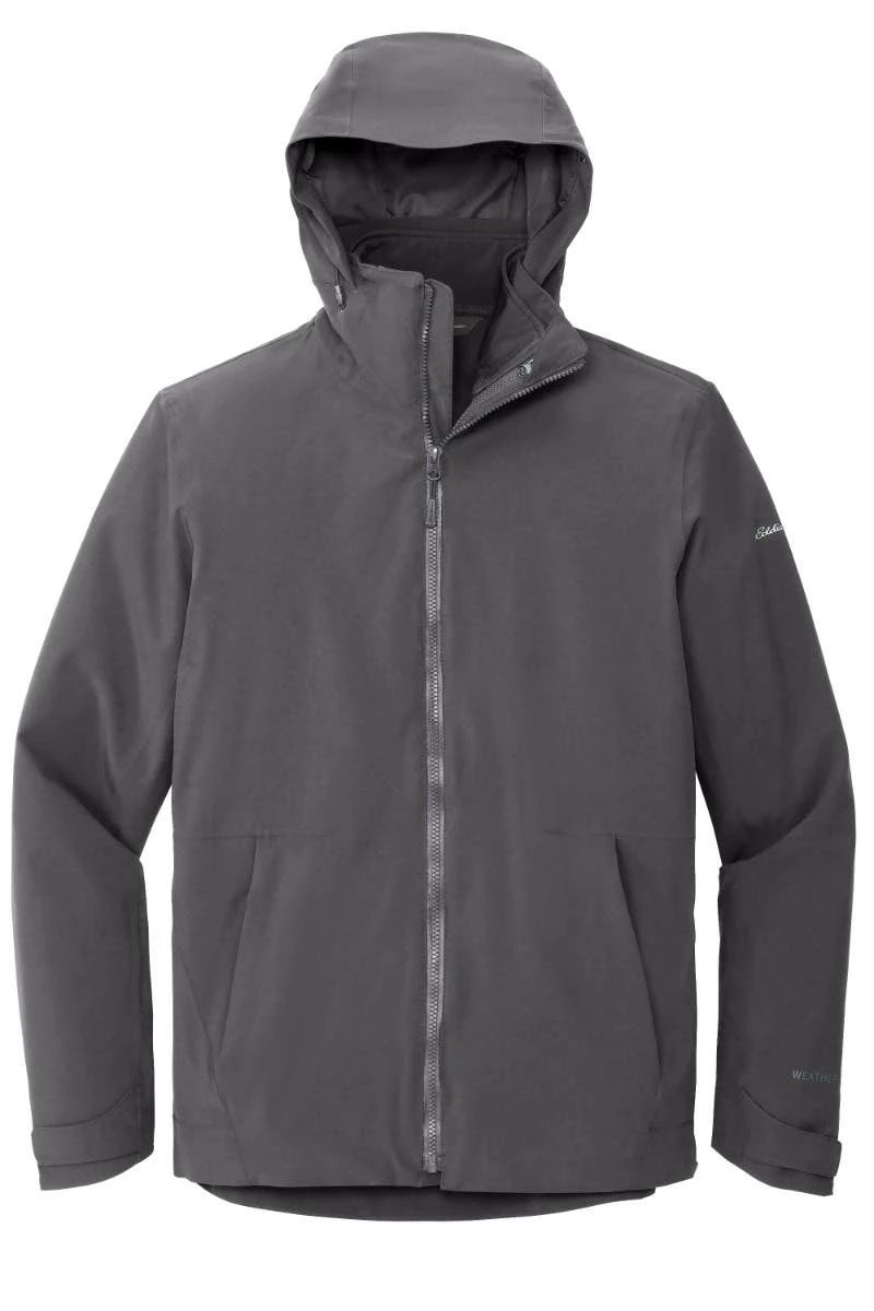 This 3-in-1 system jacket has a fully seam-sealed shell built from 5K/5K fabric and an inner soft shell jacket. Exclusive WeatherEdge and StormRepel ® durable water-repellent technology offer unparalleled weather protection. Adjustable hood with locking drawcord, full-length interior storm flap. Molded center front zippers (Shell has a waterproof zipper.) Zippered pockets. Adjustable tab cuffs with hook and loop closures. Adjustable locking drawcord hem. Contrast Eddie Bauer and WeatherEdge heat transfer logos on left sleeve. Shell made of 94/6 polyester/spandex with durable water-repellent (DWR) finish, PU laminate and 100% polyester lining. Inner jacket made of 100% polyester with a DWR finish bonded to a water-resistant film insert and 100% polyester microfleece lining.