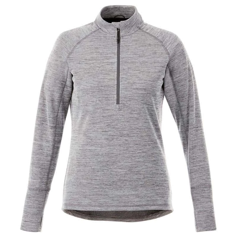 The Womens Crane Knit Half Zip delivers comfort, versatility and technical performance. The Crane features on-trend heathered colors and a dropped back hem for retail style. The moisture-wicking fabric provides all-day comfort, and added features like thumb exits and shaped seams for a flattering fit make this a style youll want to wear everyday.