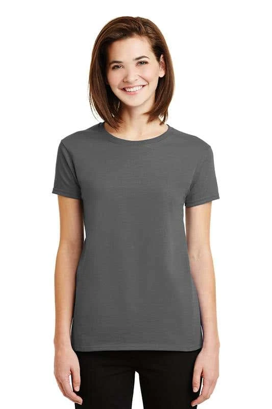 | 6.1-ounce, 100% cotton 90/10 cotton/poly (Sport Grey) 50/50 cotton/poly (Dark Heather, Safety Green, Safety Pink) Seamless double-needle 5/8′ collar Double-needle sleeves and hem Taped neck and shoulders Feminine-inspired styling Due to the nature of 50/50 cotton/poly neon fabrics, special care must be taken throughout the printing process.