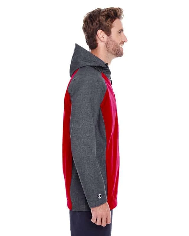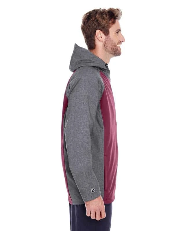 Unleash your potential with our lightweight and soft shell jacket. Crafted from a blend of 96% polyester and 4% spandex bonded to brushed jersey, it offers a comfortable fit that keeps you moving. Stand out with the Tech Print pattern detail on sleeves, hood, and panels. Customize your fit with the adjustable hood and hidden drawcord on the drop tail hem. This jacket keeps your belongings secure with dual front and chest zippered pockets, and there are even dual inside pockets for added convenience.