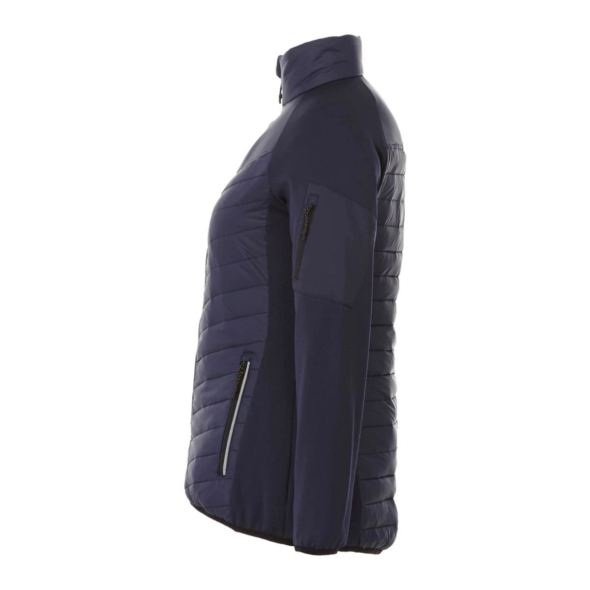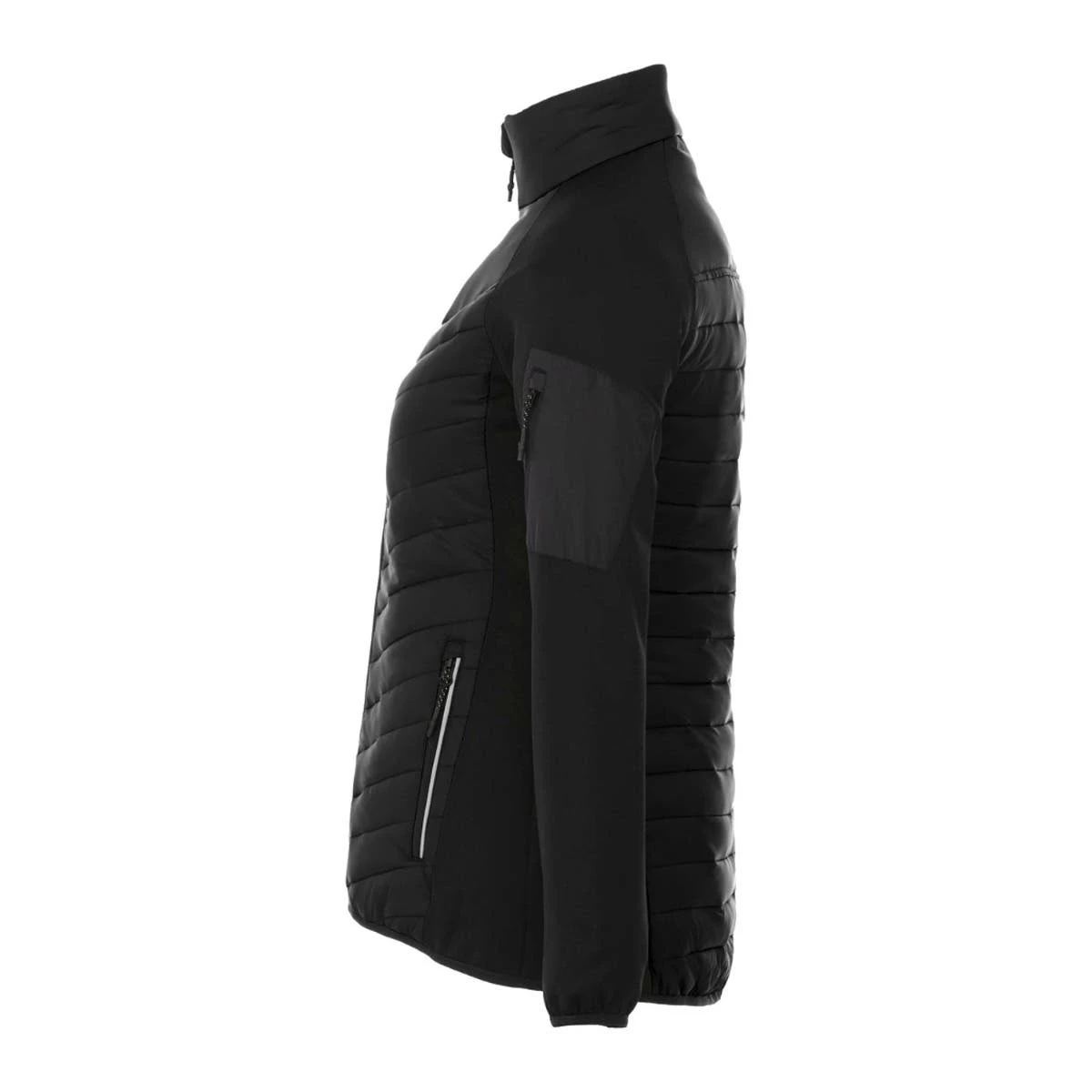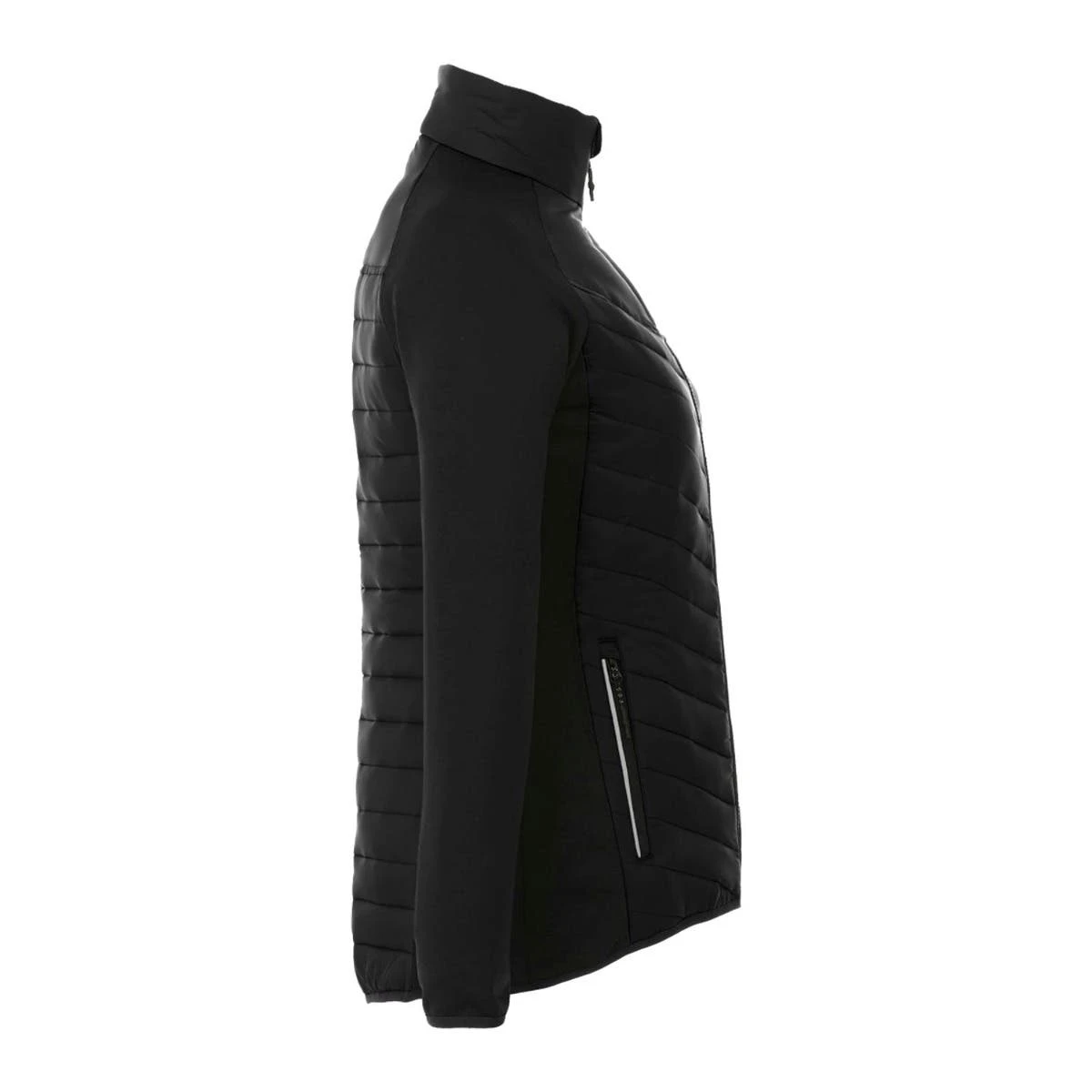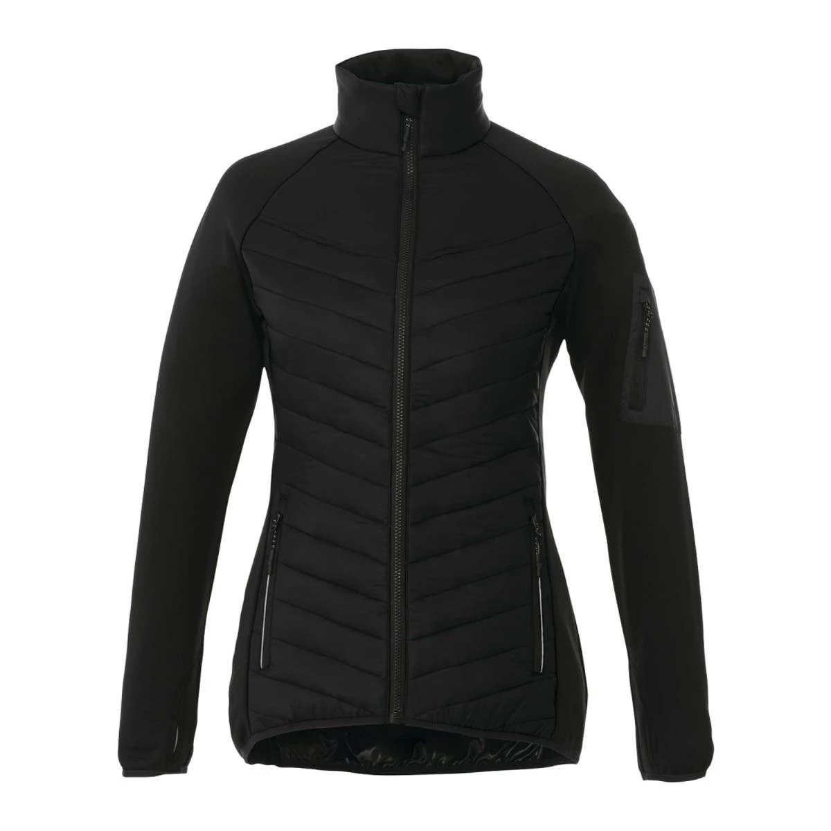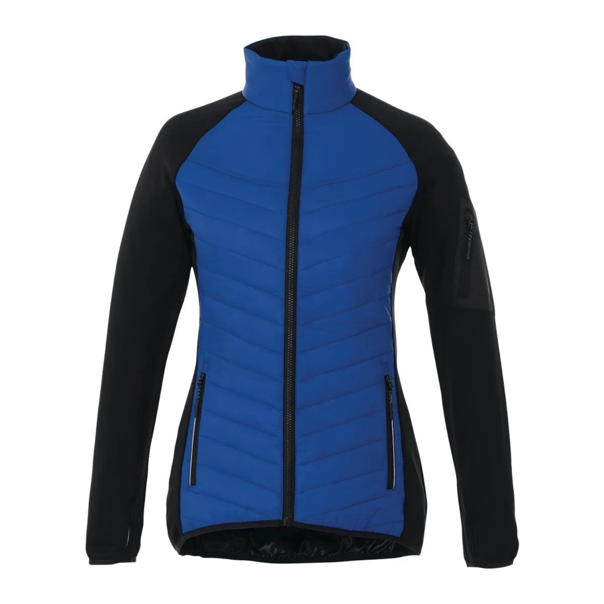 Introducing the remarkable Two Tone Hybrid Insulated Jacket for women, where style and comfort unite in perfect harmony! With its eye-catching quilted body, sleek brushed back knit sleeves, and body panels, this jacket is a true fashion statement. Stay cozy and warm with its exceptional insulation, while the water repellent finish keeps you protected during work or play. Experience an extra touch of luxury with the brushed polyester inner zip flap, chin guard, and pocket lining, adding a delightful cozy feeling. Choose from striking color-block or sophisticated monochrome options, and elevate your brand with the distinct retail appeal of the Banff jacket. Prepare to stand out from the crowd in unparalleled style and comfort!