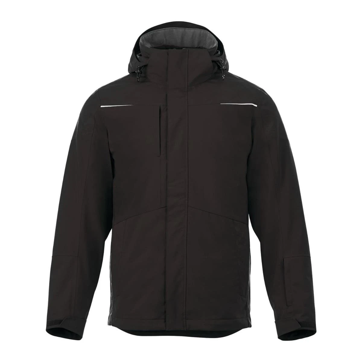 Men’s sizes of the 3-in-1 Deluxe Jacket will keep you prepared for any weather! This removable insulated hybrid jacket inner and completely seamed softshell outer jacket are both waterproof and breathable. For further warmth and protection, the removable liner can be worn on its own or under the outer shell. This high-performance jacket prioritizes comfort. It has extra padding on the collar for comfort, articulated elbows, ergonomic sleeves, and thumb exits so your hands are free. This jacket is quite utilitarian thanks to additional features like easy-grip zipper pulls, a removable hood, elastic drawcords at the hem, an inside media pocket, and concealed pockets at the sleeve and interior. The outer jacket contains reflective accents in addition to a trendy graphic pattern.