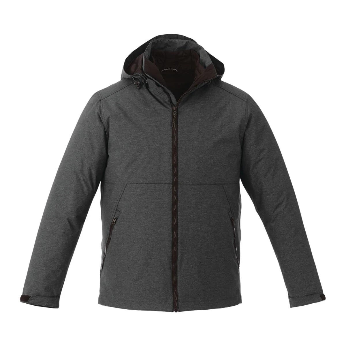 Embrace the elements in style with the all-weather Delamar 3-In-1 Jacket for men! This versatile jacket boasts a breathable, waterproof outer shell, adorned with a trendy heather nylon-polyester fabric. Seam sealed to keep water at bay, it features a detachable hood, adjustable cuffs, and cozy brushed pockets. For warmer days, simply split it into two jackets, giving you the option of a fantastic lightweight rain jacket. Stay fashionable and prepared with the Delamar 3-In-1 Jacket!