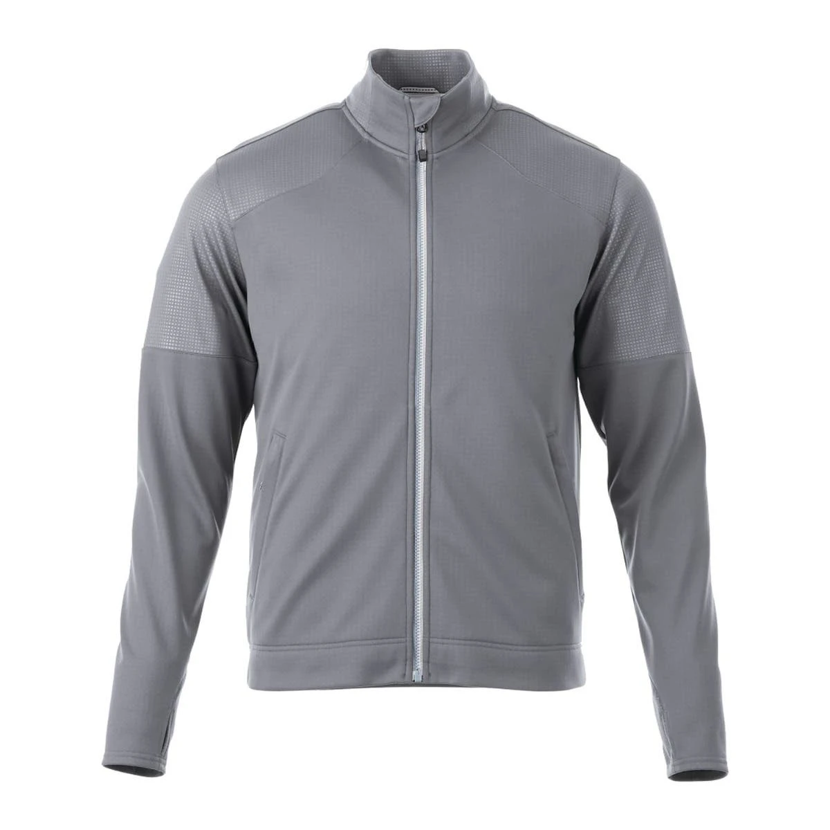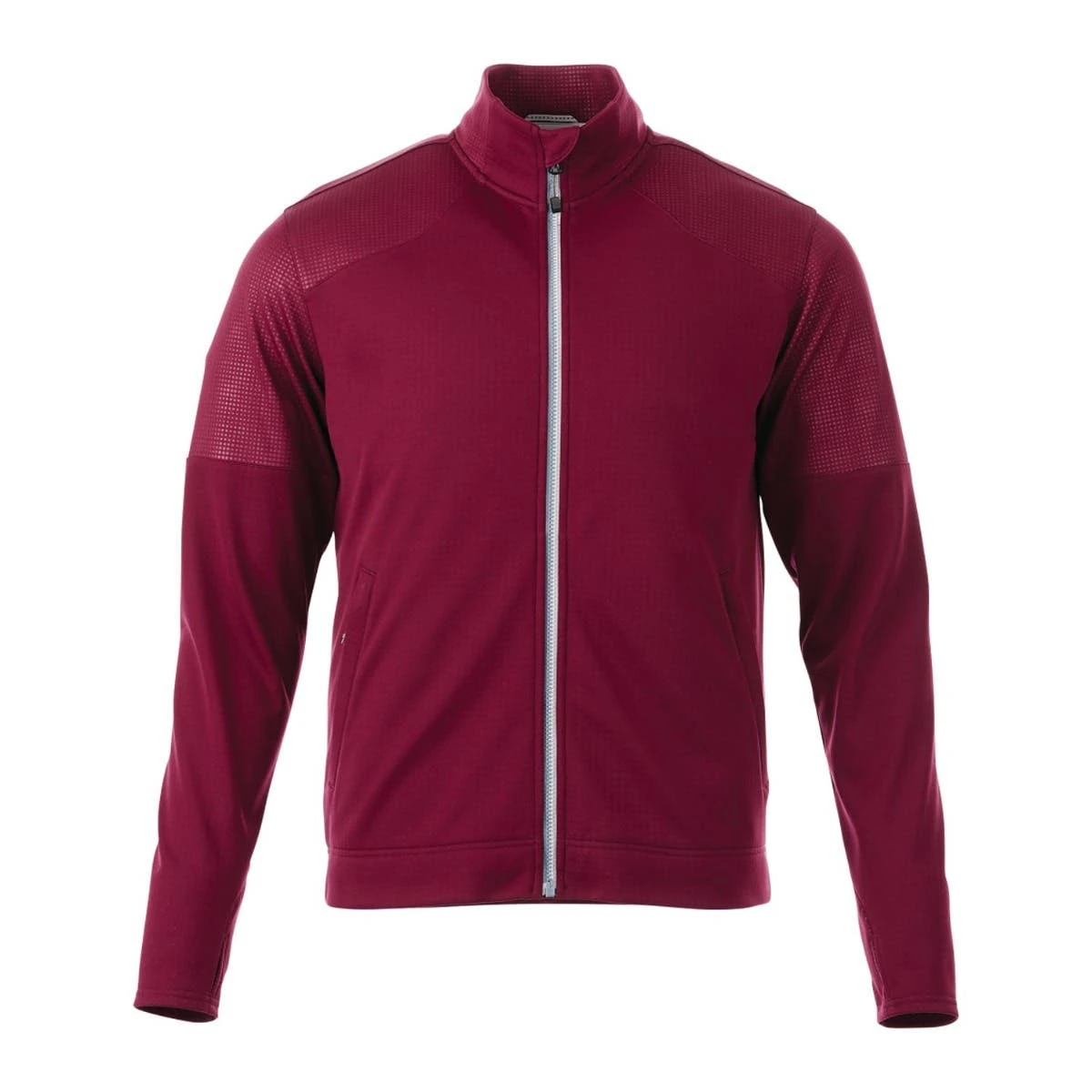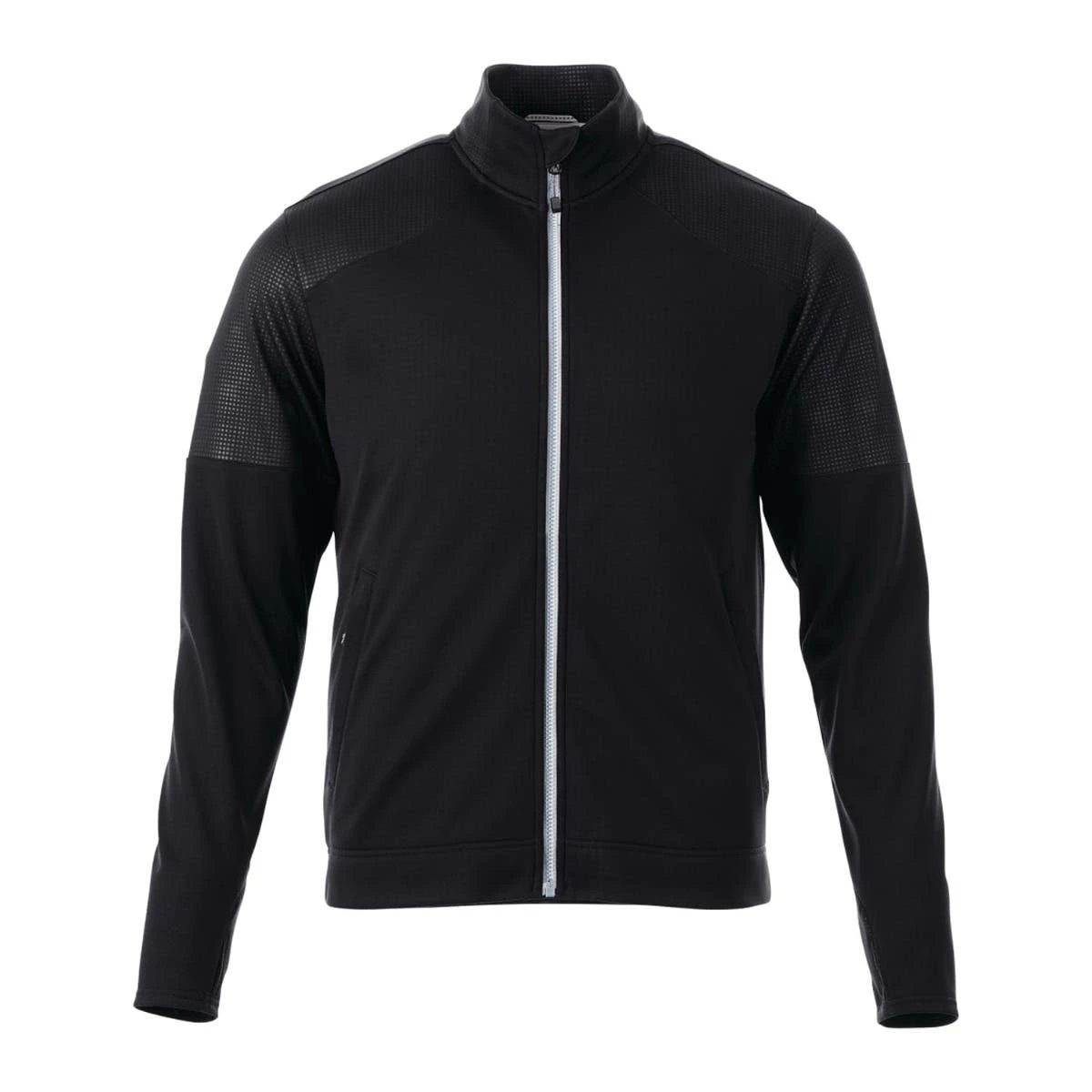 The men’s Senger Knit Jacket is made of 100% polyester fabric and blends technical performance with comfort for optimum versatility. This elegant jacket has a media pocket inside for your tech accessories, sleeve cuffs with thumb holes, and two color-contrasting zipper embellishments. Your brand will stand out thanks to a delicate graphic feature on the shoulder that gives the garment a unique appearance.