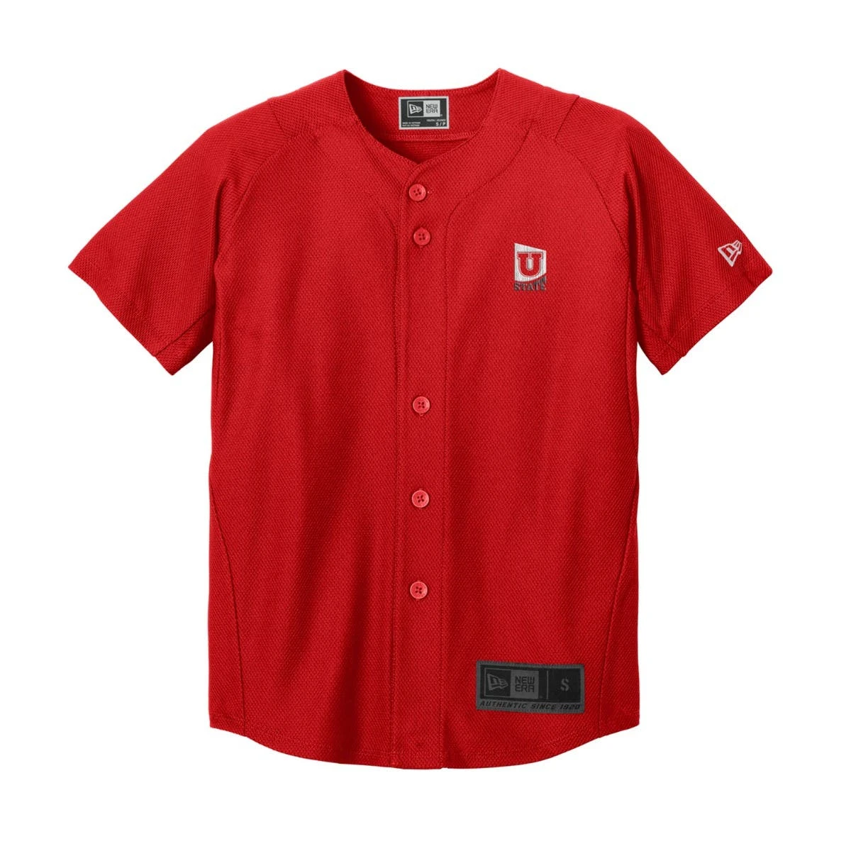 Created from the same Diamond Era textured fabric as our iconic baseball caps, this moisture-wicking, snag-resistant jersey is designed for on-field performance, but is also perfect for fans. 5.3-ounce, 100% polyester Diamond Era jacquard Heat transfer label for tag-free comfort Raglan sleeves Underarm gussets Engraved New Era dyed-to-match buttons Buttons placed for ease of embellishment Embroidered New Era flag logo on left sleeve Shirt tail hem Woven New Era jock tag at hem