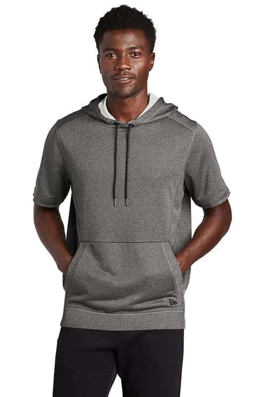The cut-off sleeves give this hoodie a retro athletic look. 6.5-ounce, 100% polyester French terry 3-panel hood Heat transfer label for tag-free comfort Round drawcords with New Era metal tips Raw edge sleeves Black mesh detail underneath the sleeves and hood Front pouch pocket Debossed silicone New Era flag logo on pocket 1×1 rib knit hem