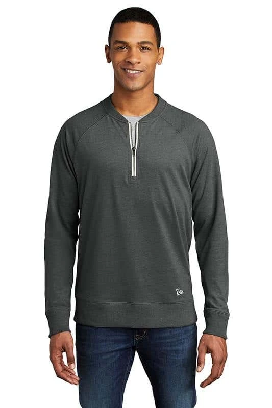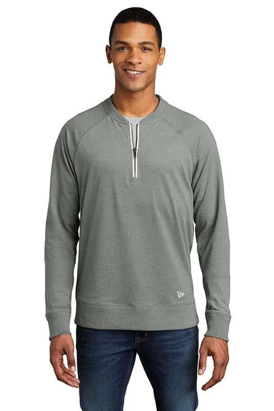 With its baseball-inspired neck, this lightweight pullover hits it out of the park with sueded softness. 5-ounce, 60/40 sueded ring spun cotton/poly, 24 singles 1×1 rib knit at neck Heat transfer label for tag-free comfort Contrast zipper tape Embroidered New Era flag logo on left hem Rib knit cuffs and hem