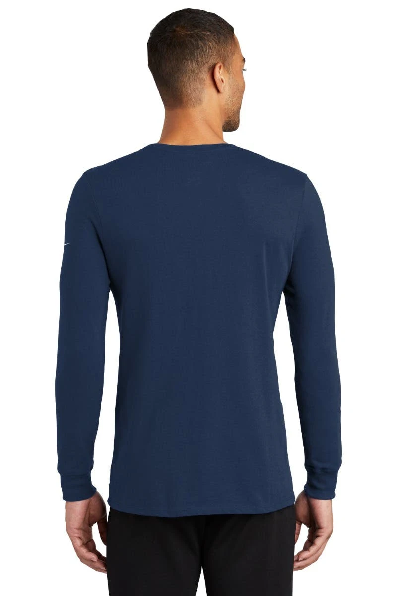 The Nike Dri-FIT Cotton/Poly Long Sleeve Tee features sweat-wicking fabric to help keep you dry and comfortable making it the perfect layering t-shirt. Features the Nike Swoosh design trademark on left sleeve. Choose from six colors.