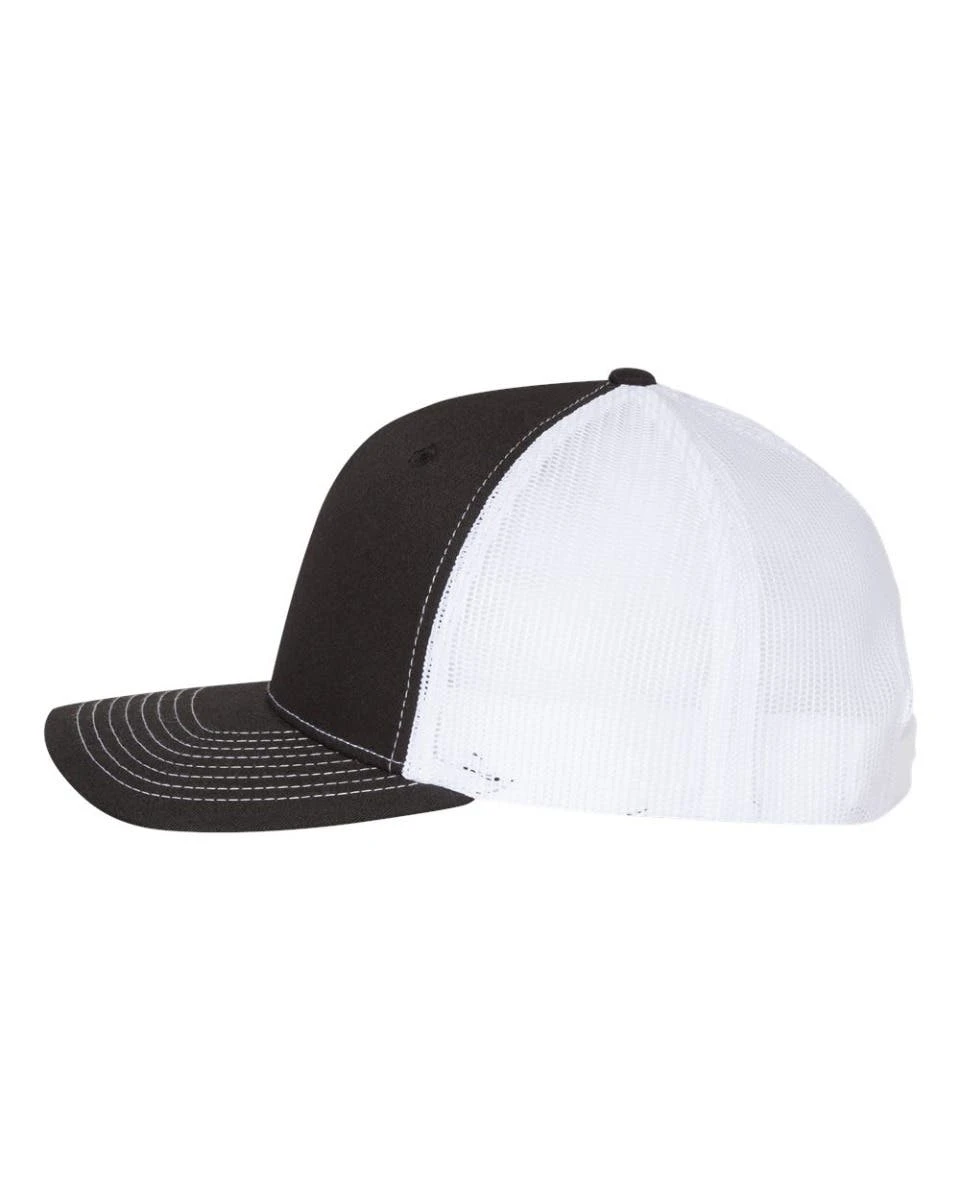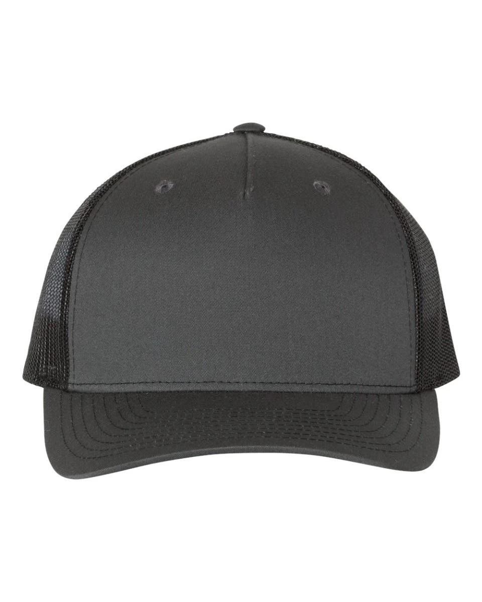 The Richardson® 112FP Five-Panel Trucker Cap is made up of 60% cotton and 40% polyester with 100% polyester mesh back that will give you that comfort and classic looking vibe! It has also a structured, mid-profile, five panel to provide an ample space for your design. Finally it has a pre-curved contrast stitched visor with adjustable plastic snapback!