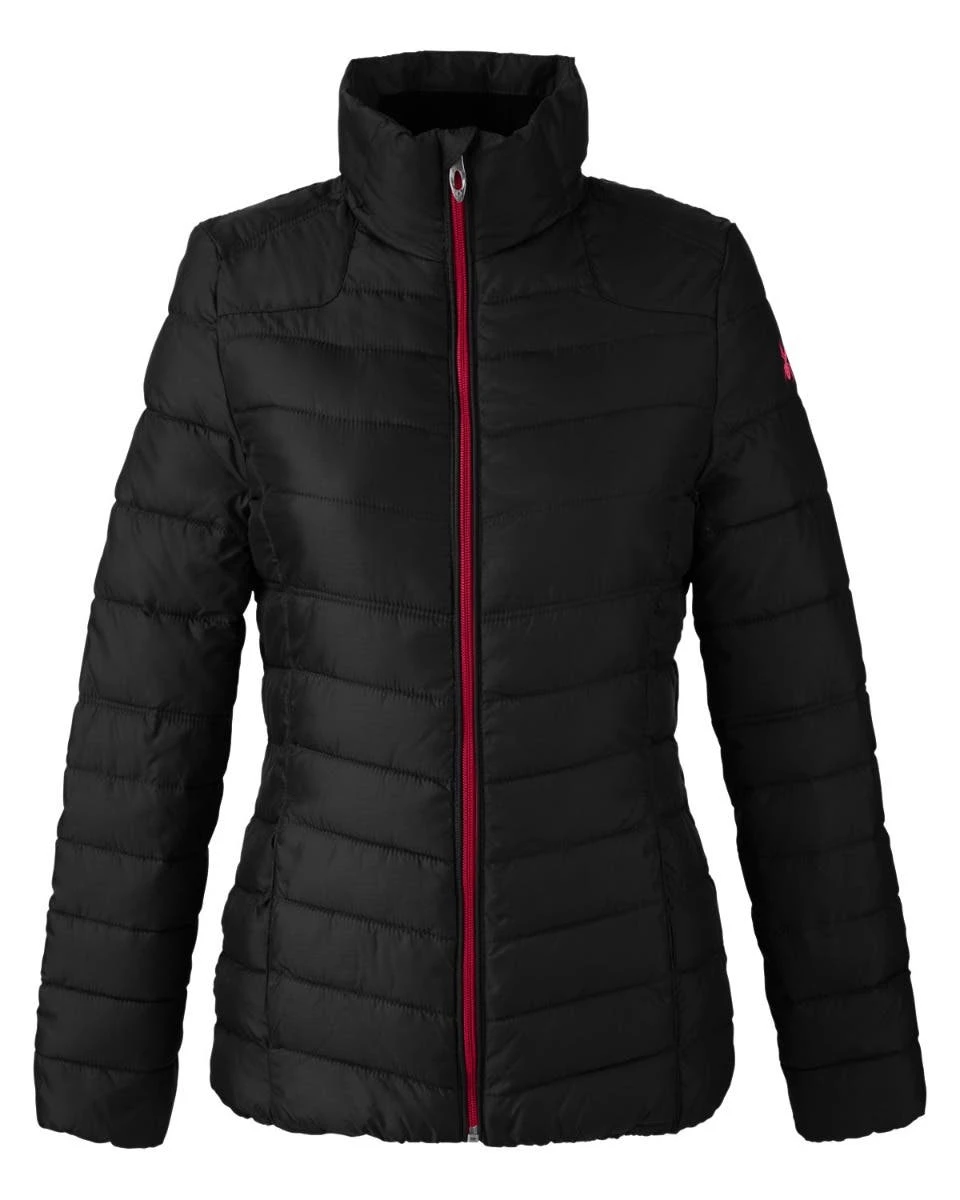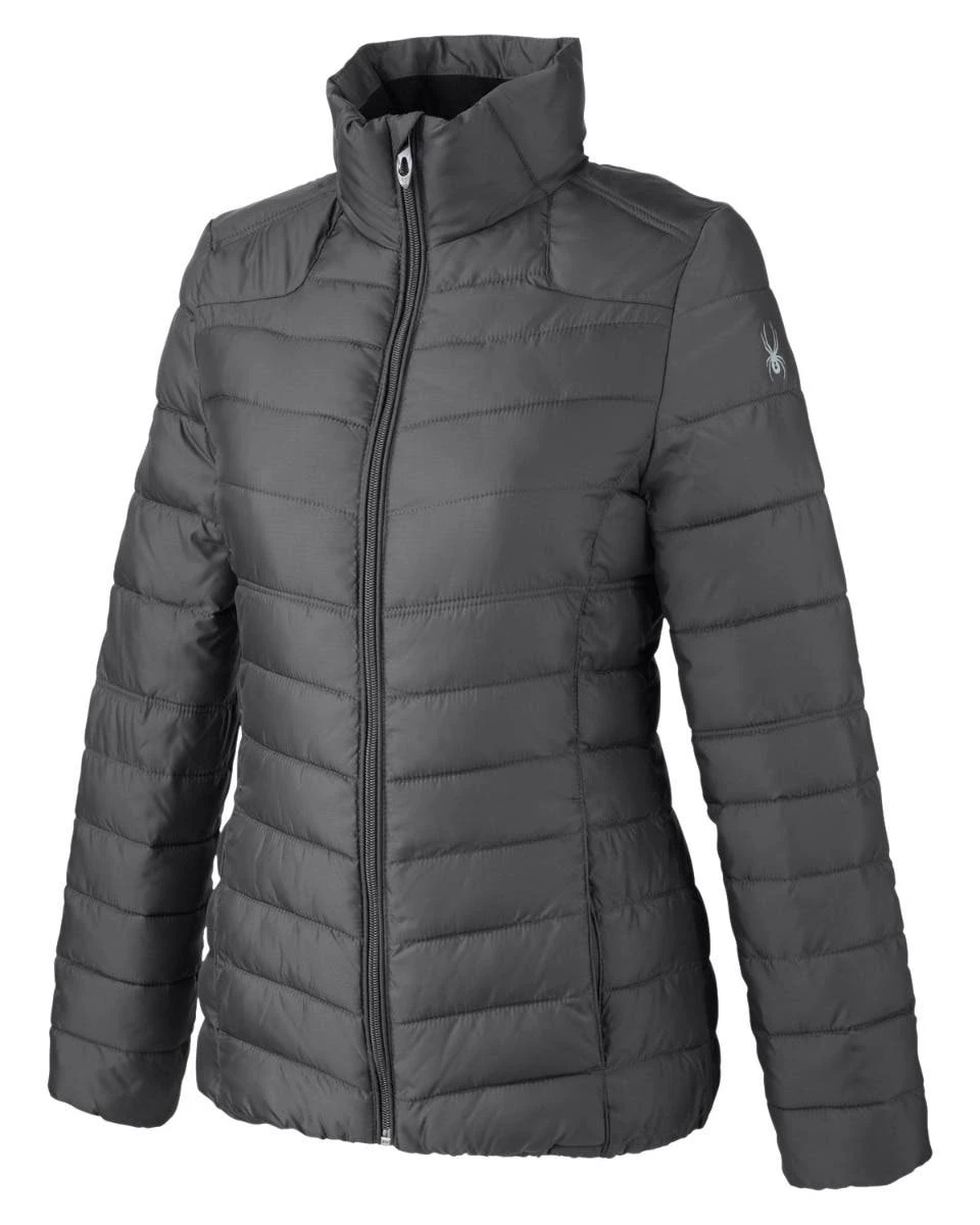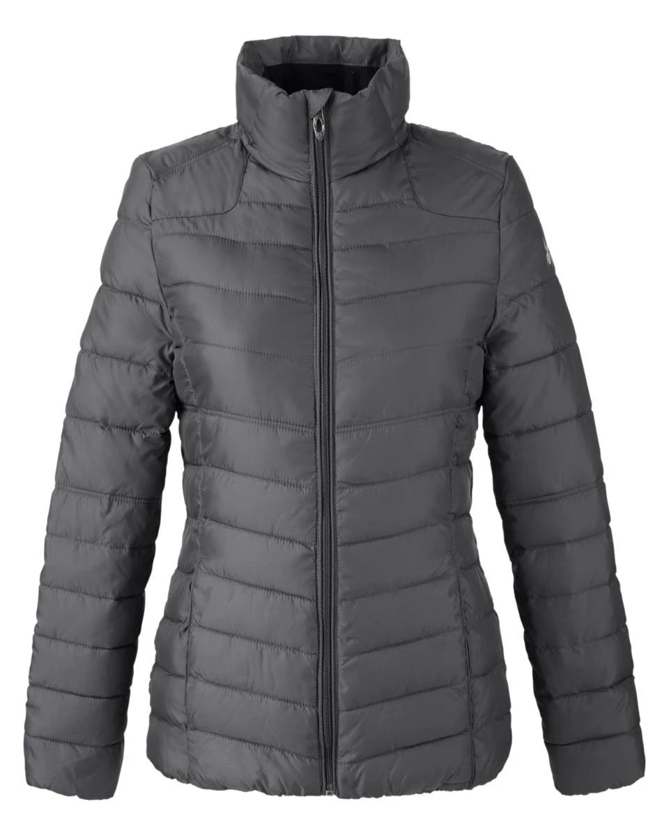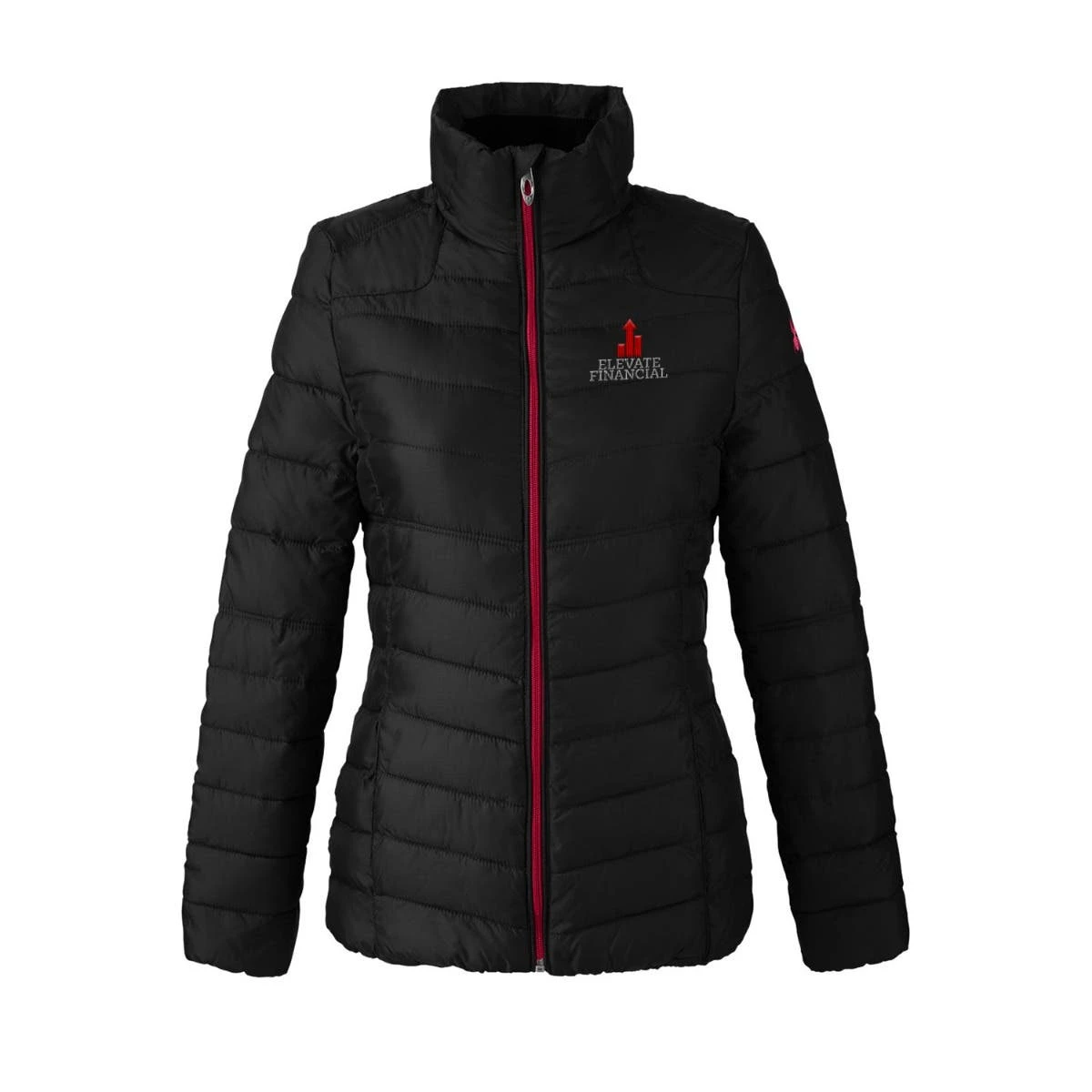 100% polyester nail head weave fabric; 300 gsm, 100% synthetic down insulation; Micro-brushed tricot inner collar piecing; classic fit; invisible zipper inside chest for embroidery access; princess seams for feminine silhouette; zippered handwarmer pockets inset into princess seams