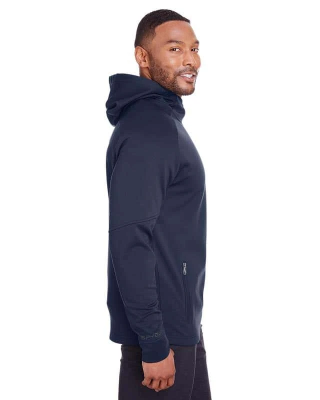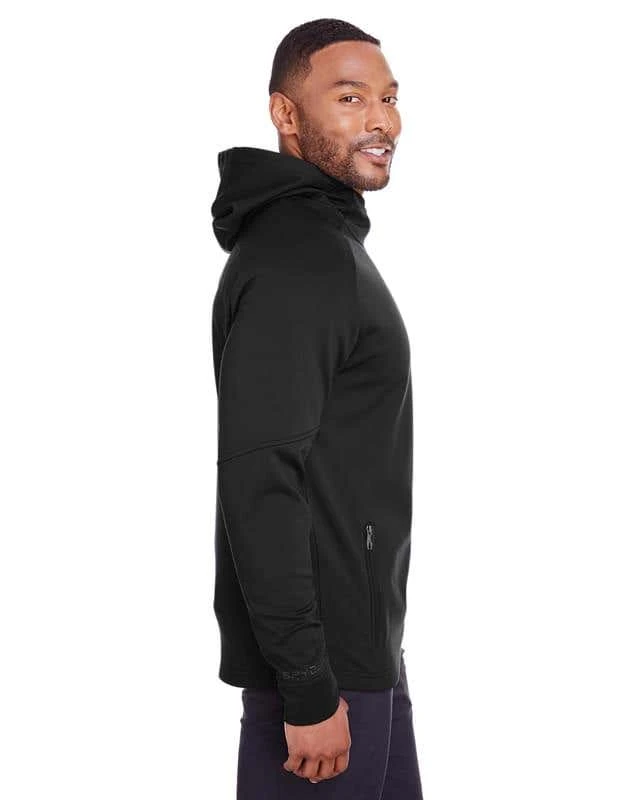 92% polyester / 8% spandex power fleece ; dyed-to-match matte tape at pockets; four way stretch fabric ; iconic Spyder bug logo on hood; Spyder logo zipper pulls
