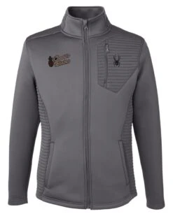 mix of neoprene fabric and 100% polyester bonded knit with polyfill channels; ionic Spyder bug logo on front left chest pocket; Spyder branded zipper closer on chest pocket ; reverse coil center front zipper with Spyder logo zipper pull