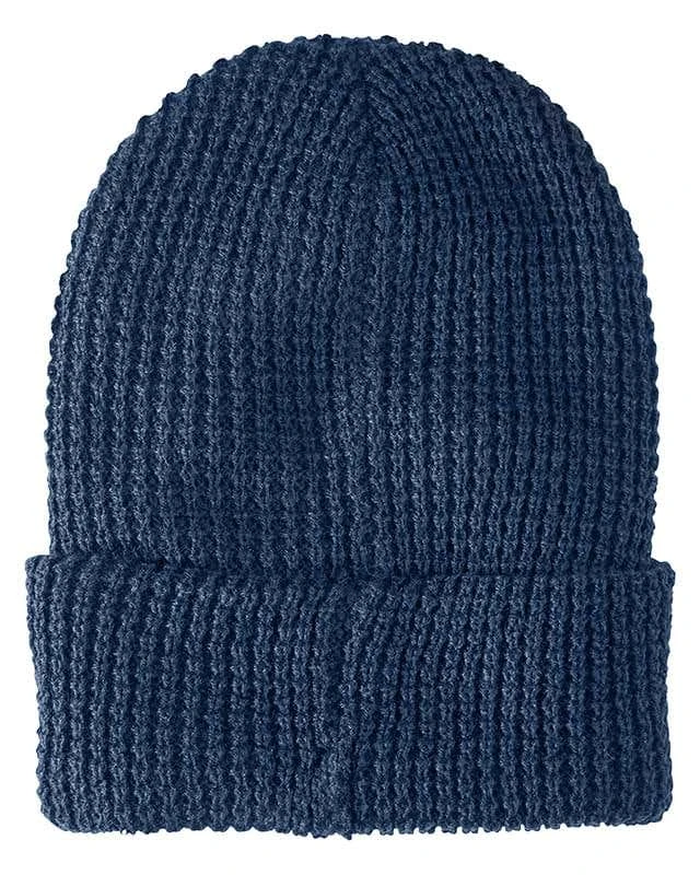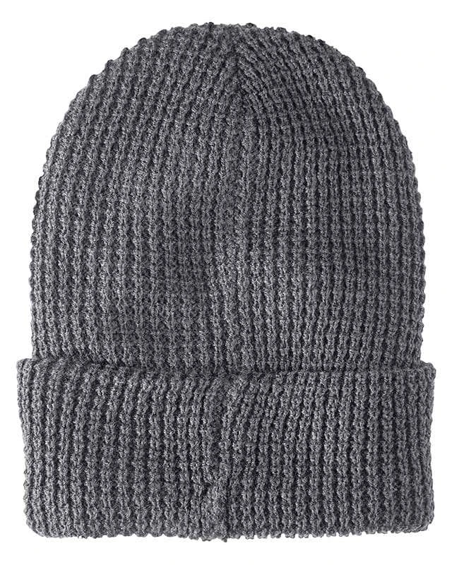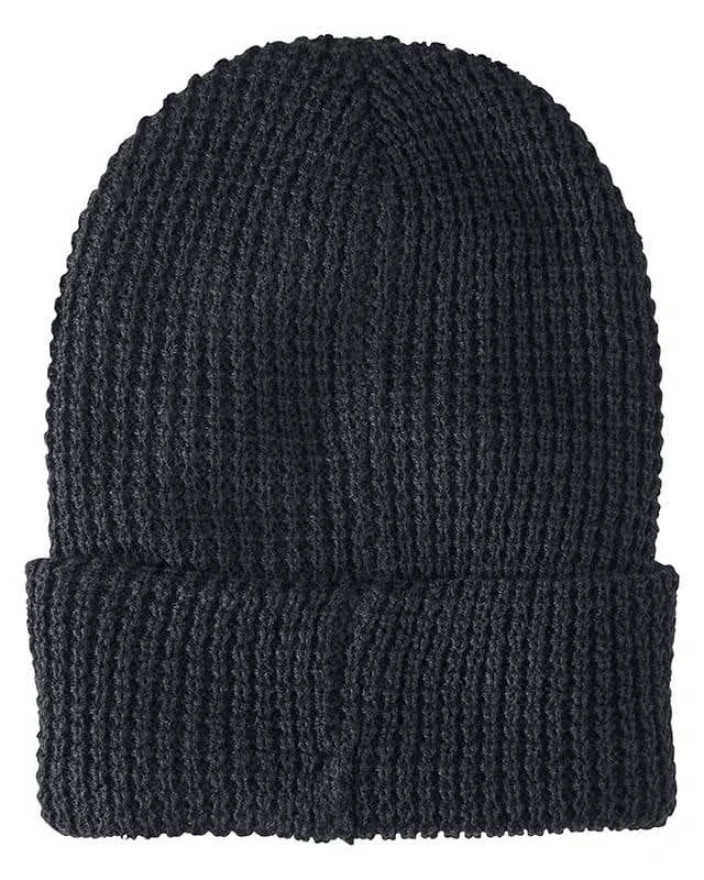 100% acrylic, waffle-knit texture; Slouched construction, can fold over; Custom woven logo label