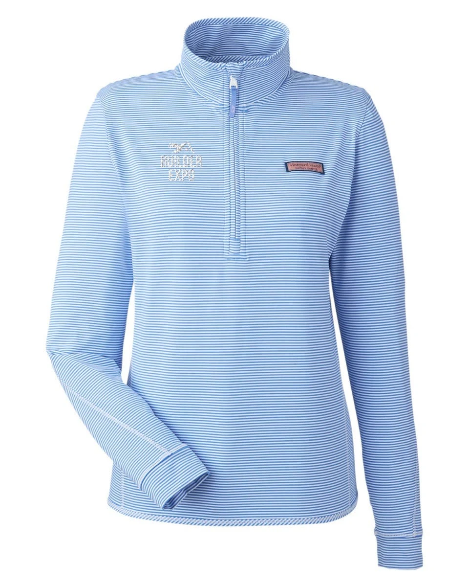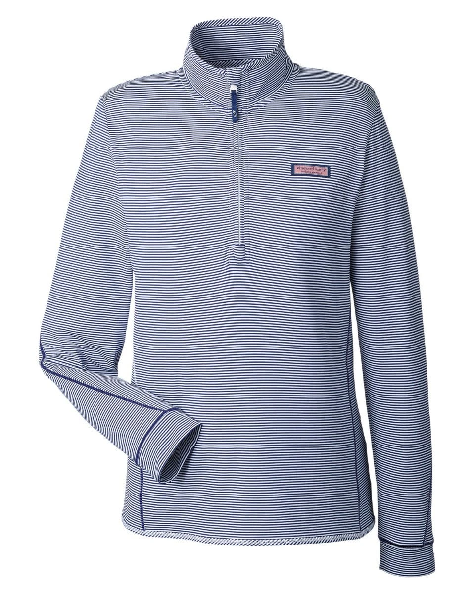 The women’s Vineyard Vines® Microstripe Sankaty Half-Zip Pullover offers lightweight and wrinkle resitant fabric making it an ideal travel piece. The UPF 30+ offers sun protection when your visiting a warmer climate. Vineyard Vines® logo box woven label on left chest