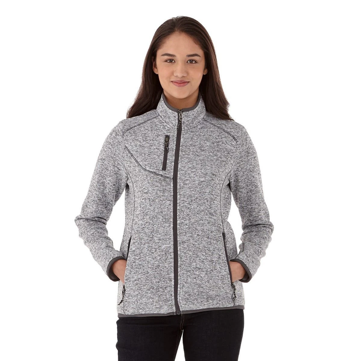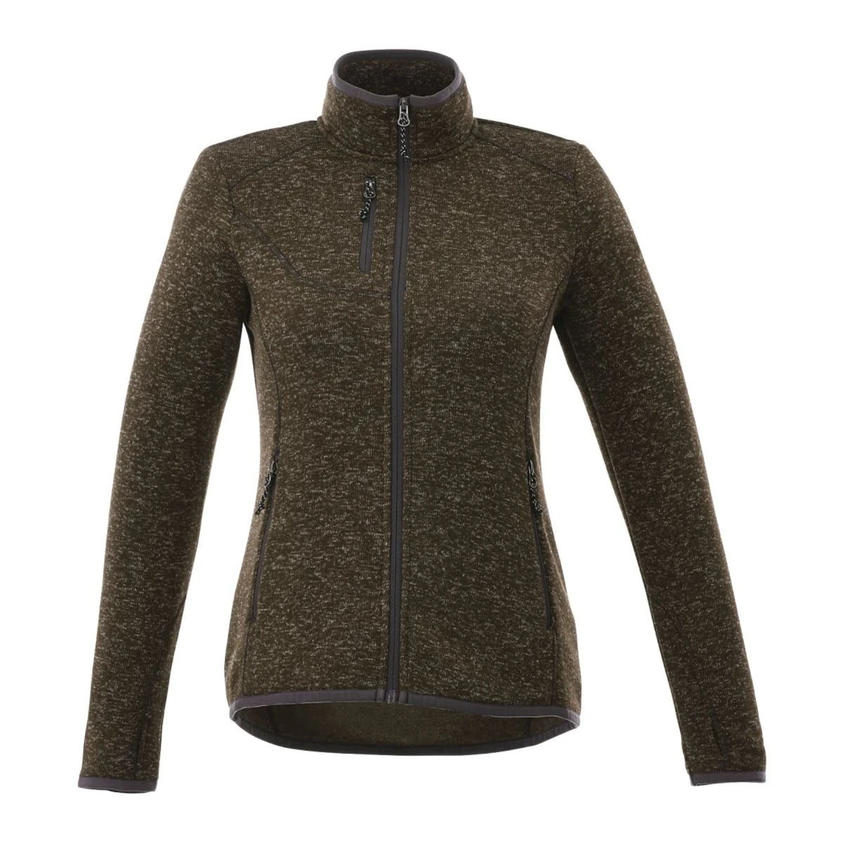 With its eye-catching heather knit design, the Full Zip Sweater Knit Jacket has the cozy look of a well-worn sweater ā but it’s got some great functional design features, too, like thumb exits in the sleeves, two lower pockets, one upper chest pocket and an exit port for an earbud cord.